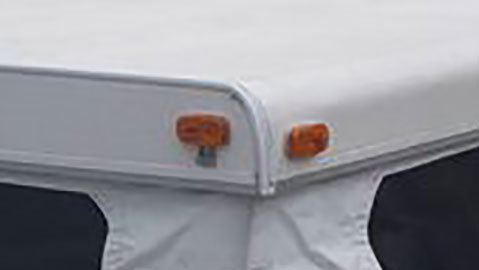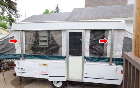 You can tell whether a pop-up has this style of lift system when the camper is up. Simply look inside the lift posts (identified with the red arrows below) when the camper is up. If you see cables, it has the older style of lift system.