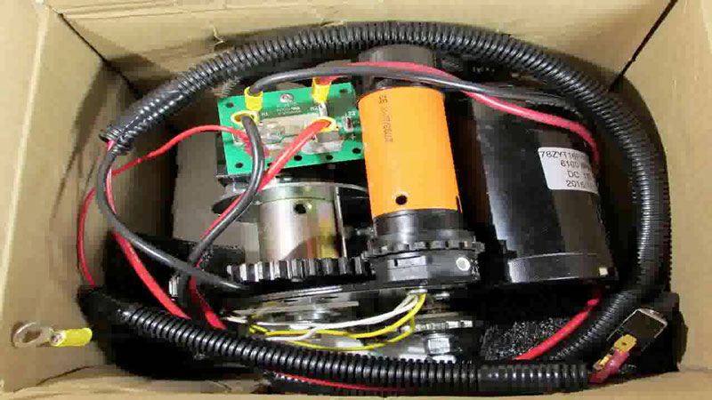 I routed and attached the cable to the spindle of the new winch, and I was in business. (The wires were already free because I had disconnected the battery for charging. So, I simply pulled those loose from the wire housing. They weren’t spliced to any other wiring.)