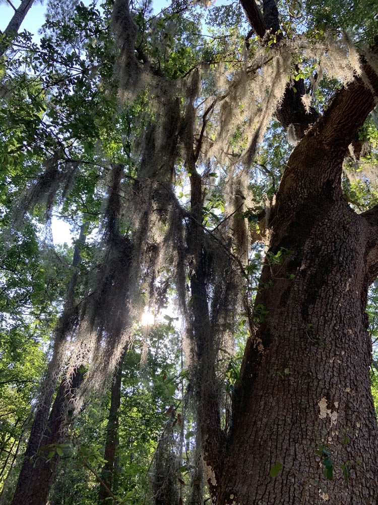 Chiggers love Spanish moss and then love making a transition to human skin. I have intimate knowledge of chiggers from my Mississippi childhood. I have no desire to relive those days.