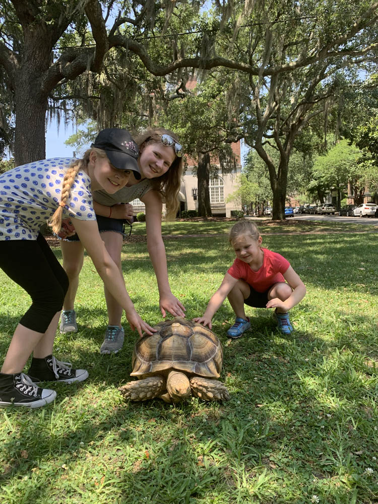 LaShera said, “That guy we saw was just there letting his tortoise eat grass, and he said people could touch it.”