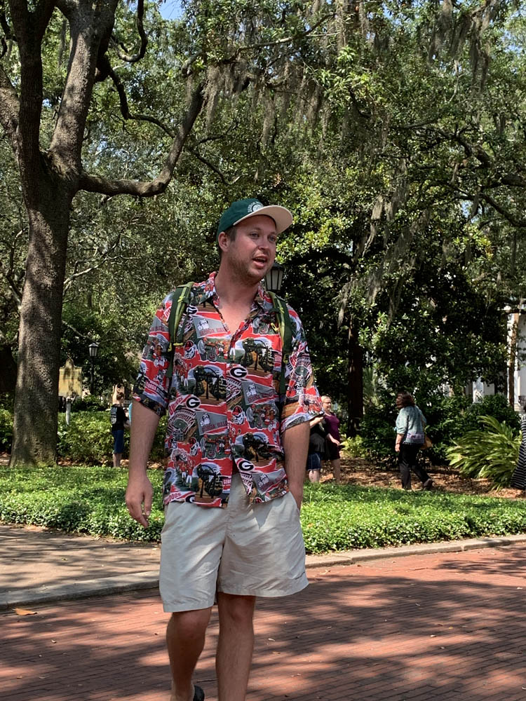 The highlight of the tour was an odd interruption from another tour guide wearing a tie-died onesie with the company name on the back “Savannah for Morons.” Indeed.